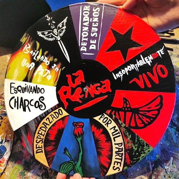Disco de vinilo LP de 30cm de diámetro, pintado con acrílico y barnizado. Hecho a mano con muchísimo amor!🎨