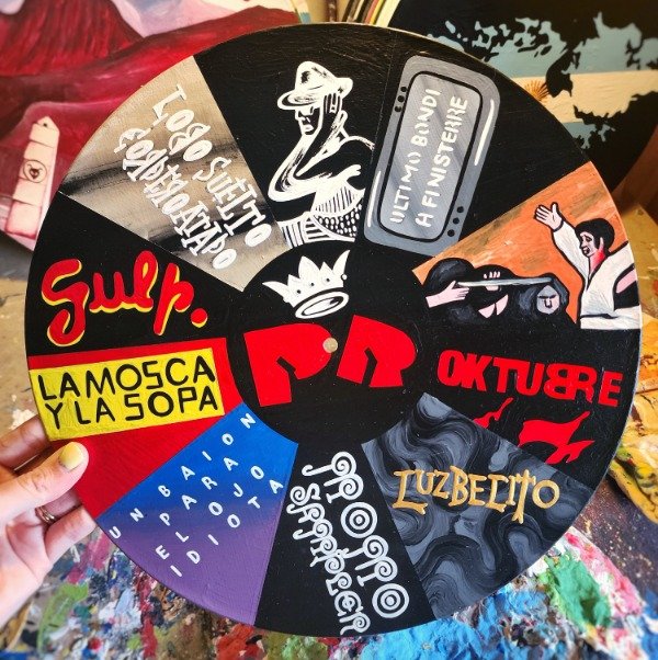 Disco de vinilo LP de 30cm de diámetro, pintado con acrílico y barnizado. Hecho a mano con muchísimo amor!🎨